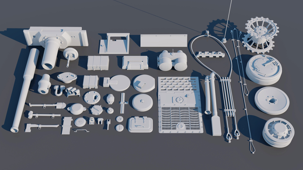 I have released a Sub D kit that can be used to add detail to tanks. The pack includes various hatches, and details to cover a tank quickly as well as some wheels and a modular track component . Comes with 44 separate components ready to be used in production or concept with UVs. Does not include materials, or full tank. Can be imported in to all softwares including Blender, Maya etc. The kit is for commercial use